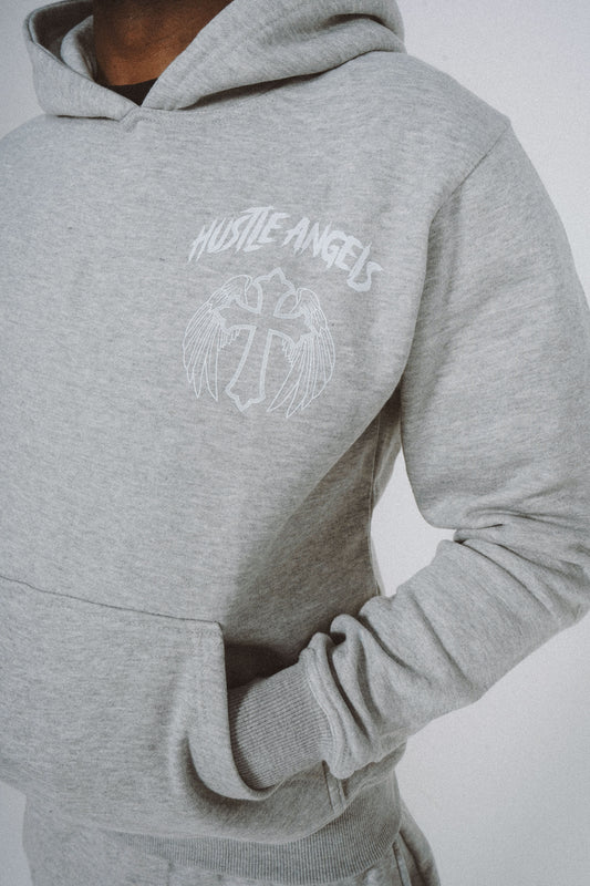 001 GREY HUSTLEANGELS PULLOVER HOODIE